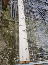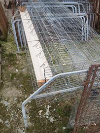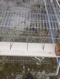 gabbie per galline ovaiole lunga 2 metri con tre scompartimenti con mangiatoia e scivolo per le uova e gambe per sollevarla