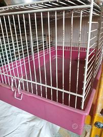 Gabbie utilizzate per piccoli roditori quali criceti. Gabbia con fondo rosso 45x25x22 cm; gabbia con fondo rosa 45x30x22 cm. Condizioni buone per entrambe le gabbie, usate ma integre anche se con qualche imperfezione nel rivestimento bianco del filo metallico e nella parte superiore del fondo in corrispondenza degli angoli. Sportelli e ganci per la chiusura in ordine. Prezzo riferito alla singola gabbia, contattatemi per ulteriori dettagli/informazioni/immagini.