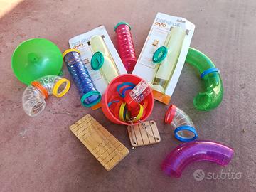 Gabbie Habital Lovo componibili, con accessori. Una gabbia a griglia (modificata) e porta roditori. Insieme ci sono accessori x il passatempo dei nostri amici (altalena, ruote, palla ecc ecc). NO PERDITEMPO