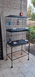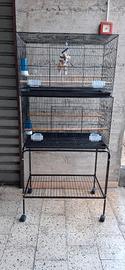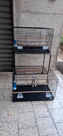 Vendo due gabbie per volatili. La gabbia circolare presenta una riparazione nella parte alta della base ma non visibile. mentre le gabbie rettangolari sono come nuove. Vengono vendute complete di accessori.