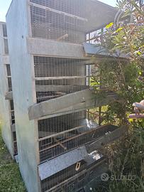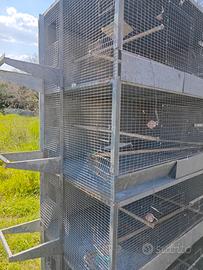 Vendo n. 5 Gabbie professionali per uccelli, (le mie ospitavano spettacolari pappagalli). Suddivise in 4 scomparti, le misure sono: altezza 2 metri - larghezza 120 cm - profondità 80 cm Prezzo singolo ( quello in blocco è da concordare).