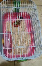Disponibile gabbia per roditori (criceti, gerbilli, ratti) con base rosa, griglia pieghevole, 2 casette, una lettiera, un accessorio, 2 ciotole.