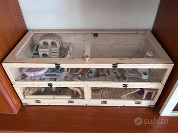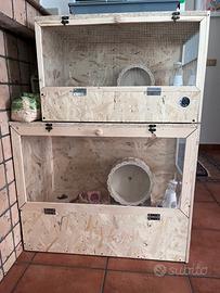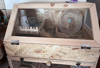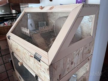 Gabbie per piccoli animali su misura (quelle in foto sono adatte per criceti). Realizzate in legno e rivestite all’interno con impermealizzante, pellicola trasparente e pannello nero sul fondo. Personalizzabili a vostro piacimento, dalle misure, ai ripiani, agli sportelli e tutto! Contattami per maggiori informazioni o per un preventivo! No spedizione, ritiro in zona Venetico/Messina.