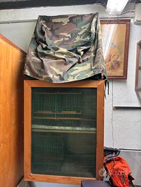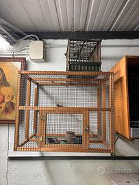 Vendo in blocco mobilino per gabjie da richiamo con vassoio in acciaio e gabbie + molilino per 4 gabbie + gabbia realizzata a mano e trasportino per spalla per 4 gabbie. Ritiro a mano a Firenze Il prezzo è complessivo posso anche dividere.