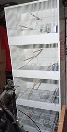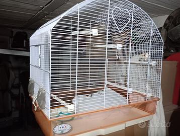 Vendo solo in blocco non separatamente. 4 gabbie impilate nuove ognuna misura 60x40(quelle bianche).piu una gabbia usata 60x35 e una gabbietta piccola usata larga 35.non chiedete altre foto.se interessati venite a vederle.non trattabileeeee