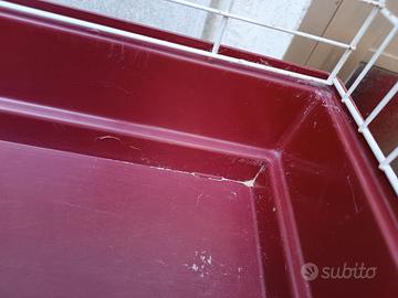 Gabbietta per piccoli animali. Come si vede dalle foto è usata, la parte della gabbia ha un po' di ruggine all'interno, ma non ne compromette l'uso. Volendo si può riverniciare. Parte del fondo in plastica. Non spedisco. Ritiro a mano zona Treviso e Venezia.