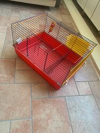 Vendo gabbietta per conigli o piccoli animali 50x68cm-altezza 40cm, completa di accessori (reggi fieno, rete separatrice, abbeveratorio, pietra minerale per roditori)