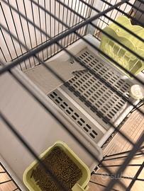 Roditori, porcellini d'India e coniglietti: questa casa è progettata su misura per loro. Ha una struttura in plastica e in rete metallica, con un'apertura frontale e una nella parte superiore. La base ha un vassoio estraibile, per pulire la gabbia in un attimo, e quattro ruote con freni per spostarla in totale comodità.