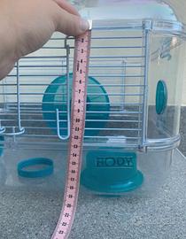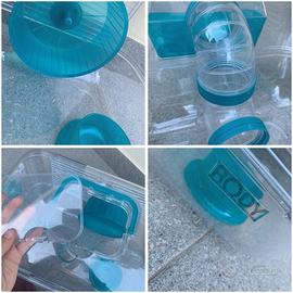 Gabbietta per piccoli roditori azzurra e trasparente. Condizioni buone perché c'è una crepa nella parte sottostante (non compromette l'utilizzo) e la finestrella sopra è rotta, ma si chiude comunque perfettamente! 🐹 Gli accessori presenti sono quelli che vedete in foto (ruota, ciotolina per il cibo, tubo, casetta per la nanna), MANCA il beverino. Super carina per il vostro pelosetto 🥰 Nelle ultime foto potete vedere le misure prese con il metro. 📏 Brand: Rody Lounge Il prezzo è un po' alto, ma non può essere trattato perché tramite l'acquisto ci saranno due omaggi super utili per il vostro cricetino 😊 Se vi servono info in più scrivetemi pure... e anche se volete degli spoiler sugli omaggi 🤫 🩷