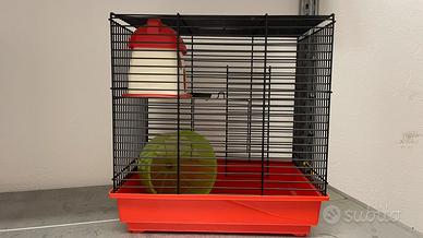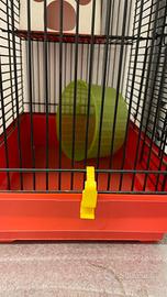 Gabbietta per criceti con gabbia un metallo e base in plastica separabile e facilmente pulibile. Comprende: -casetta - scaletta - ruota