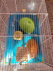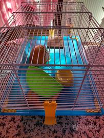 Gabbietta per criceti con accessori.