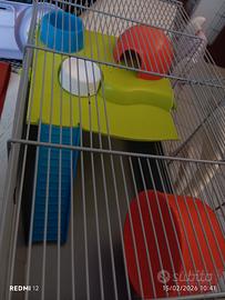 gabbietta per criceti 2 piani ottime condizioni (segni di denti negli accessori)fondo perfetto completa di casetta 2 ciotoline e ruota