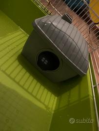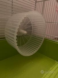 Vendo gabbietta per criceti (50 x 35 x 25 cm) tenuta in buonissime condizioni. Viene venduta con accessori (casetta, ciotola, 2 ruote); nel prezzo é compresa una confezione di lettiera in trucioli aperta ma quasi del tutto piena.