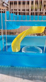 Gabbietta per criceto, con scivolo, tana e vaschetta per il bagno