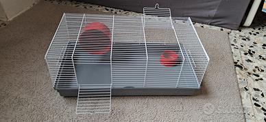 Gabbia per roditori (utilizzata per Gerbillo) usata purtroppo pochissimo con ruota funzionante e ciotola per cibo.