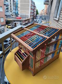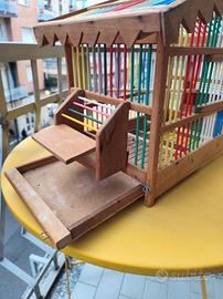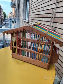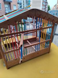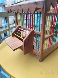 Vendo bella gabbietta per uccellini in legno con inserti colorati. misure 48x35x27 cm.