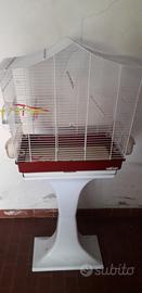 Gabbietta con piedistallo in plastica per volatili completa di accessori abbeveratoi e porta mangime con cassetto estraibile per la pulizia. Praticamente nuova tel 3298961463