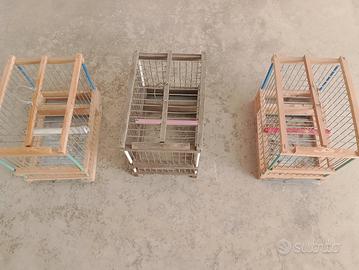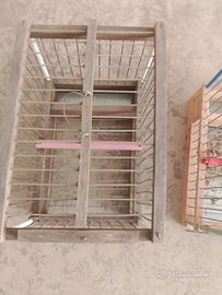 Gabbiette in legno trasportini. ideali per trasportare piccoli uccelli. cedo anche singolarmente.il prezzo e da ritenersi per tutte e 3. singolarmente € 10.