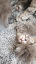 Disponibile cuccioli di razza SIBERIANI,disponibili da subito i cuccioli hanno due mese e sono svezzati è abituati alla lettiera.disponibili sia maschi che femmine. le caratteristiche del gatto Siberiano una razza affascinante, nota soprattutto per essere considerata "ipoallergenica" e per il suo carattere eccezionalmente affettuoso, tanto da essere spesso definito un "gatto-cane",il manto semi folto è lungo grigio perla.gatti molto intelligenti.per informazioni contattatemi 389 940 7054 per