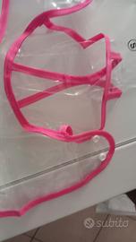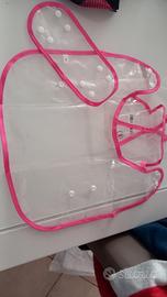 colore trasparente con bordi rosa con bottoni per chiuderla e cappuccio.