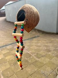 Noce di cocco per criceti con scaletta i ganci etto in superficie da attaccare alla gabbia. Molto capiente è in buonissime condizioni.