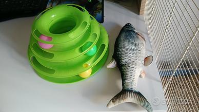 Vendo tunnel per gatti (10€), ideale anche per cuccioli, usato pochissimo, tappeto interrattivo (15€), Piramide con palline (5€) e pesce elettrico che muove la coda(7€) e topolini radiocomandati (7€ l'uno), Scatola interrattiva con palline(5€). Vendo anche separatamente. Prezzi trattabili.