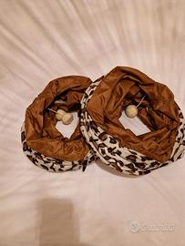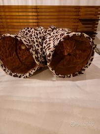 2 tubi in vellutino leopardato.fodera interna "croccante" con giochino. componibili in varie forme grazie alle asole e richiudibili con fibbie. MAI UTILIZZATE PERCHÉ DOPPIONI.