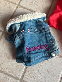 Giubbetti chihuahua. Quello di jeans e’ per piccole taglie invece quello rosso e’ per taglia media usati matenuti molto bene