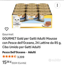 vendo scatolette gourmet Gold gusto pesce pacchi da 24 pagati 15 € vendo causa gatto volato in cielo consegna a mano a Gassino o Torino nord