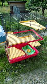 In vendita bellissima grande gabbia, creata ad hoc per cincillà ma ottimamente funzionale anche per altri animali simili. Come si vede dalle foto è molto grande, ben tenuta e completa degli accessori (abbeveratoio, ciotolina, lettiera/sabbierina ecc). La gabbia è anche smontabile in due pezzi (a metà dell'altezza), cosa utile anche per facilitare il trasporto o la pulizia. I ripiani sono posizionabili alle altezze volute a scelta