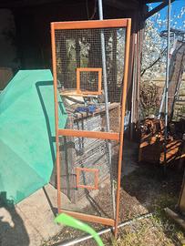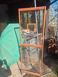 voliera completa da montare . tetto ottagonale in vetroresina, fianchi telai legno e rete acciaio. completa di basamento a griglia e accessori vari. trattasi di oggetto di buona fattura . diametro coperchio 180 cm. altezza 200 cm circa. telefonare Fabrizio 3394714037 non posso rispondere messaggi. telefonare ore di lavoro.