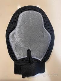 accessori per la toelettatura ed è adatto a cani di tutte le taglie e tipi di pelo. Il suo design reversibile offre due funzioni in un unico prodotto: il lato in gomma, con rilievi massaggianti, rimuove i peli morti e stimola la microcircolazione, trasformando la spazzolatura in un momento rilassante; il lato morbido, invece, è ideale per le zone sensibili come occhi, bocca e orecchie, oltre che per raccogliere i peli rimasti su tessuti o indumenti. Grazie al cinturino elasticizzato e alla chiusura in velcro, il guanto rimane ben saldo alla mano, garantendo praticità e comodità durante l’uso. Tra i suoi benefici specifici, spiccano l’effetto massaggiante, la rimozione dei peli morti e la possibilità di pulire superfici e tessuti dai peli. È leggero, lavabile e completamente senza elementi dannosi.