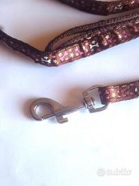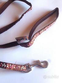 Lunghezza 110 cm x 1 cm. Colore marrone, decorazioni ossa bianche rosa. Nuovo mai usato. Happy dog pet leash. Size small. Nuovo mai usato.