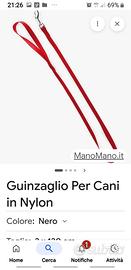 guinzaglio in materiale nailon colore rosso con moschettone per aganciare al collare oggetto nuovo mai usato