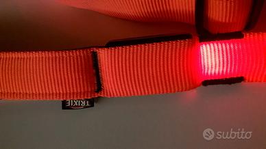 Vendo guinzaglio Trixie con collare luminoso per passeggiate serali. Usato pochissimo, praticamente nuovo. Si illumina grazie ad una striscia led inserita all'interno della stoffa, che si attiva con un pulsante on/off. Funziona a battera.
