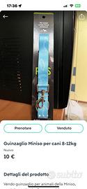 vendo guinzaglio per animali della Miniso, modello pet leash. È azzurro chiaro con stampa nuvole bianche adatto a cani da 8 a 12 kg.