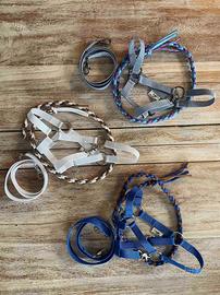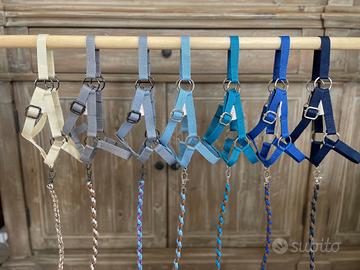 Set composto da CAVEZZA, REDINI e LUNGHINA, adatto ad un hobby horse A3 ma le misure sono facilmente personalizzabili anche per un A4 o altro. La cavezza ha la misura del sottogola regolabile grazie ad una fibbia e si chiude con un moschettone, vedi misure in foto. Le redini misurano circa cm.84 compresi i moschettoni. La lunghina misura circa cm.80 compreso il moschettone e le frange finali. Ogni misura può essere personalizzata senza costi aggiuntivi! ATTENZIONE: il costo è riferito ad un solo set e NON comprende l'hobby horse. •I colori reali potrebbero variare leggermente a causa delle impostazioni dello schermo del dispositivo. •Per modifiche del set o misure personalizzate scrivetemi e chiedete! Possibile la consegna di persona in zona sud Milano o Lodi e dintorni. Instagram: kiamay.creations