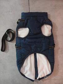 Impermeabile imbottito nuovo, con pettorina integrata e guinzaglio.
