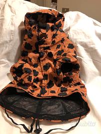 Impermeabile Camon Leopold taglia 36, poco usato, leggero con interno in rete mesh traspirante, cappuccio estraibile e regolabile con coluisse, chiusura velcro sul collo e sull’addome, coulisse posteriore e nel girovita per gestire la vestibilita’, apertura per collare/pettorina con zip waterproof. Il modello si trasforma in una comoda bustina