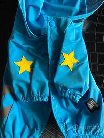 Impermeabile per cani di piccola taglia, molto coprente e con cappuccio di plastica rigida trasparente . Per cani lunghi fino a 35 cm. Vendo per taglia troppo grande per il mio cagnolino. Veste abbondante. Mai usato. La taglia L si riferisce alle taglie per cani piccoli .