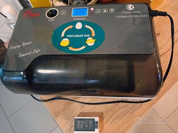 Vendo incubatrice 12 uova, gira uova in automatico . Solo incubatrice 30 euro , inssieme almisuratore umidita' 50 euro .