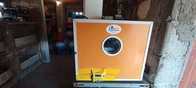 incubatrice a tre ripiani, con volta uova automatico, vaschetta per l'umidità interna autoricaricante da serbatoio esterno. controllo temperature con termometro a bulbo. più, a parte, alcuni ripiani per schiusa o per uova di diverse dimensioni da altre specie.