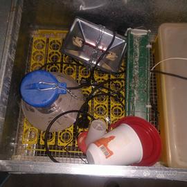 vendo ,incubatrice,con motorino automatico,lampada,abbeveratoi, gabbia per cova e primi giorni.Tutto quello che serve vendo in blocco e non spedisco,ritiro a mano . incubatrice usata per un paio di cover,la gabbia usata una sola volta..
