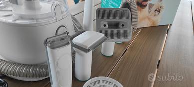 aspirapelo per cane , 5 in 1 aspira pelo , taglio con aspirazione annessa e accessori per la pulizia della casetta o cuscino cane . Usato pochissimo , alcuni utensili mai toccati , 2 filtri compresi , scatola ed imballo originale .