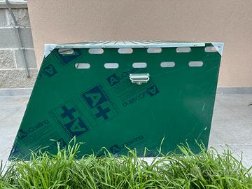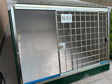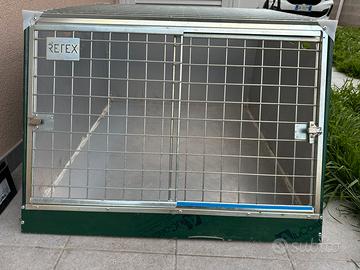 Kennel auto per cani. Lunghezza 98cm, larghezza 84cm, altezza 55cm. Realizzata in rete di alluminio con doppia porta scorrevole, si apre da entrambi i lati. Lateralmente ha ancora adesivi di protezione. Usato in ottime condizioni. Dispongo anche di pannello divisorio con i suoi listelli per interno.
