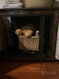 Kennel con due accessi (frontale e laterale) in ferro battuto e legno. Bellissimo complemento d’arredo .Misure 63x51x59