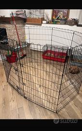 Questo recinto apparte un po di polvere è pari a nuovo ,è formato da otto pannelli ,h106cm forma esagonale ma come si puo vedere dalle foto gli si puo dare la forma che si preferisce anche rettangolare
