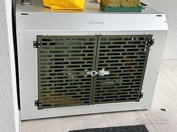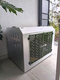 Vendo kennel marca Steel Dog (famosa per trasportini resistenti e di ottima qualità) da auto per trasporto cani. Le misure le potete osservare nelle foto. Non è stato mai usato perché purtroppo le misure del kennel per la macchina che abbiamo non vanno bene. Non è dotato di porta posteriore. In dotazione c’é anche un tappetino di plastica. Consegna a mano, no spedizioni