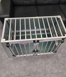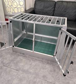 Il trasportino è totalmente in alluminio, divisibile in due con dividono removibile. Adatto a un cane grande o due cani medi.