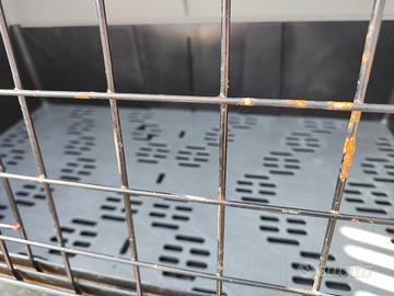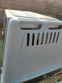 Vendo kennel per cani di taglia medio grande. Marca Ferplast, misure 100x60,5x66 cm. Il trasportino purtroppo ha fatto ruggine in alcuni punti della grata ma volendo è possibile trattarla, per il resto è molto valido, non l'avrei venduto se non fosse che non sta nella nuova auto.